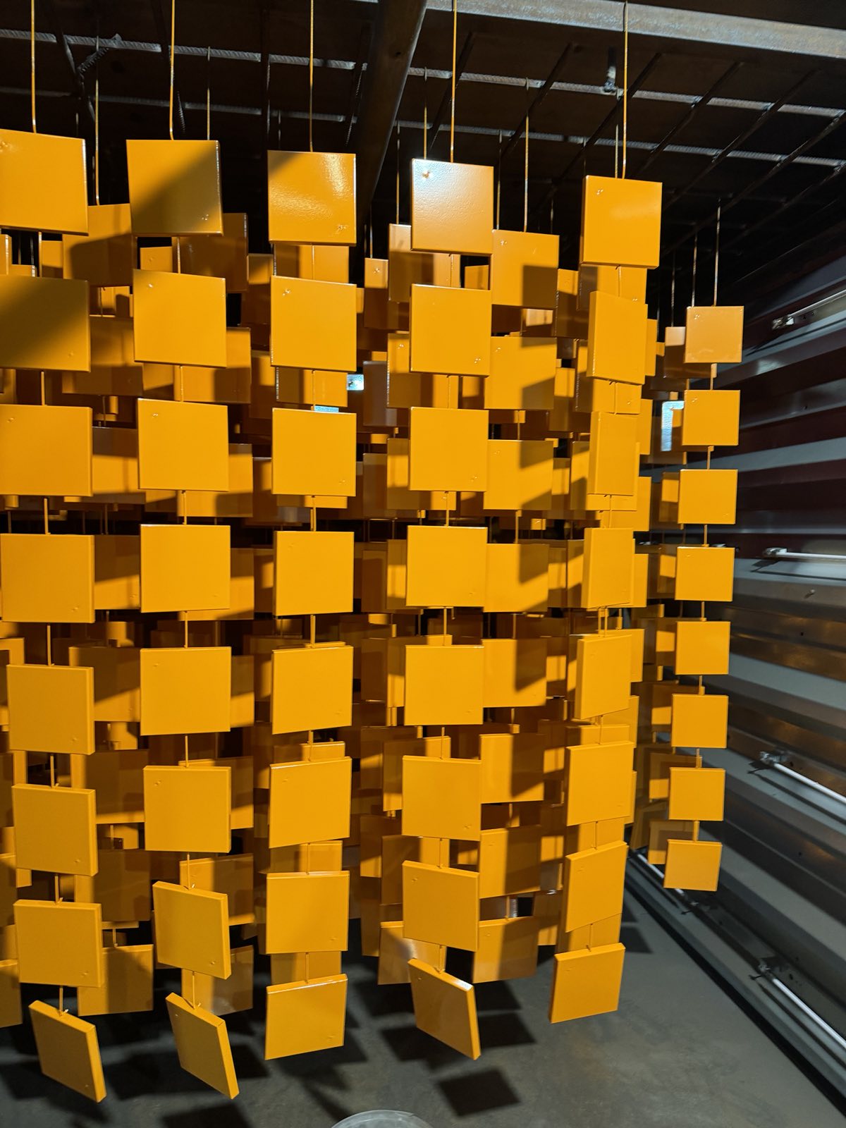 Наступний етап – порошкова покраска. Ми нанесли насичений помаранчевий колір, використовуючи спеціальну фарбу, яка забезпечує міцність, рівномірність і стійкість покриття. Після запікання в термокамері металоконструкції отримали не лише стильний вигляд, а й додатковий захист від корозії, впливу вологи та ультрафіолету.